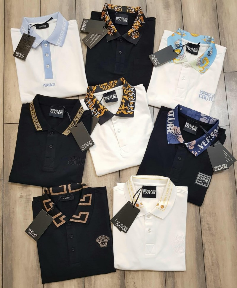 Versace White Embroidery Print Collar Neck Premium Polo T-shirt F2400-W4